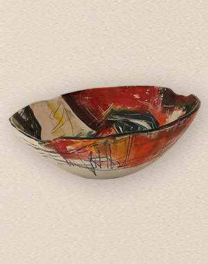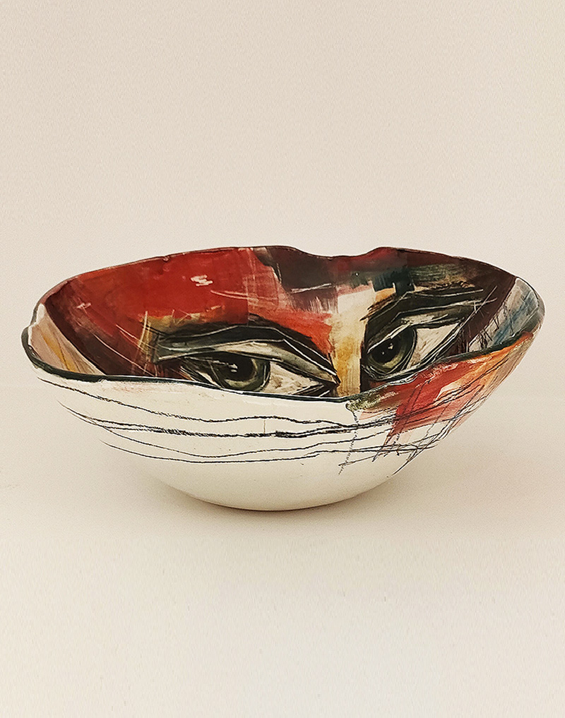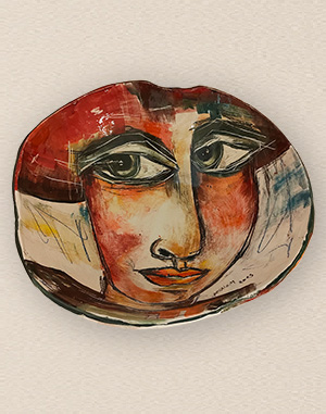 Flat ceramic, décor, interior and exterior, enamel crystalline lead-free. Figurative Style, the work of Mr. Belaid.