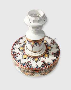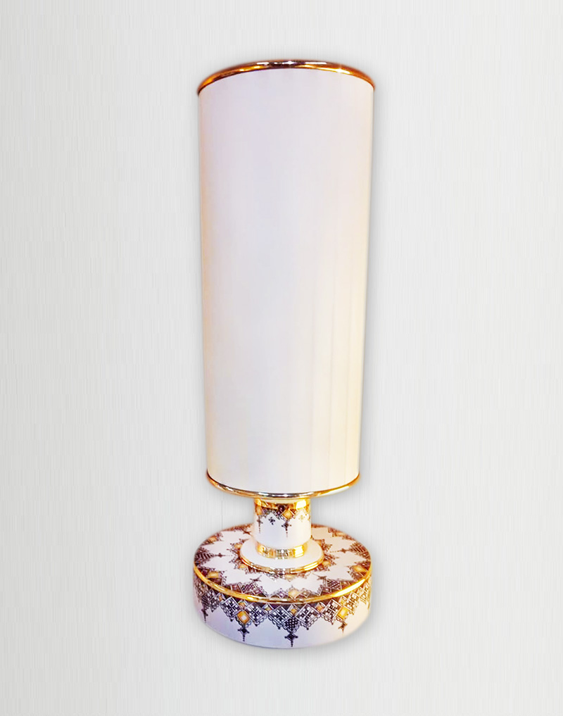 Beautiful bedside lamp, decoration done freehand with oxides, crystalline and gilding pure gold 24 carats.