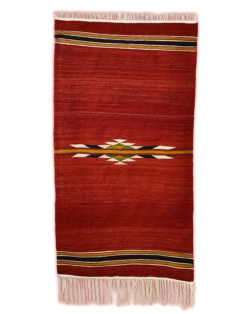 Tazliza is a small ksar (village oasis) some 50 km northwest of Timimoun. Famous for its source of drinking water, the story also says that it was implantation sustainable tribes, nomadic arab of the Beni Hillal, from the Middle East in the Twelfth century. Influence which reads in the prevailing motif of this rug which is extremely common in Jordan, Syria, Turkey, but it is very rare or even unknown in the world Zénète.