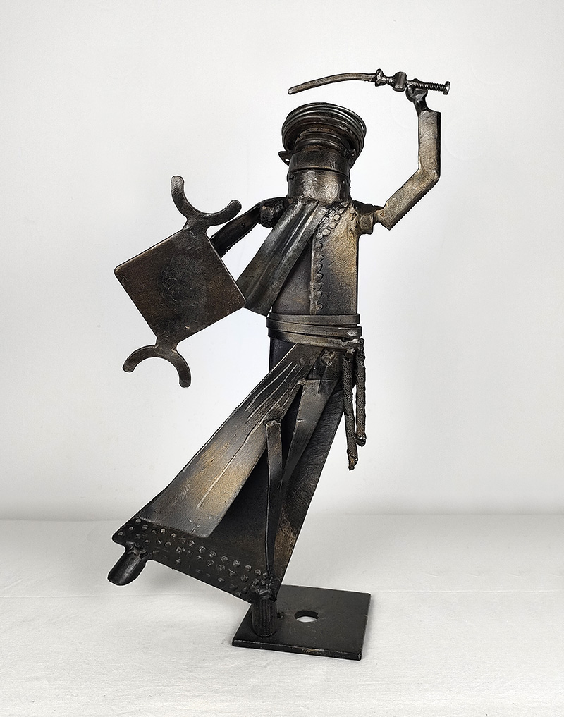 Mehdi Tafadjira, artiste plasticien de Ghardaïa, réalise des œuvres exclusivement à partir d’objet de récupération. « Le Targui » est l’un de ses thèmes emblématiques.