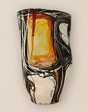 Belle pièce en terre réfractaire, modelée et décorée à la main, représentative de l’œuvre de Z. Bacha qui réussit la synthèse entre ses inspirations berbères et la technique japonaise du Raku.