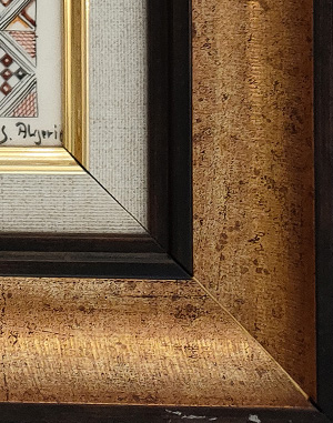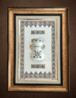 Motif en relief d’un couscoussier en céramique pour ce joli tableau , décoration réalisée à main levée avec des motifs berbères très finement exécutés avec des oxydes, de l’émail cristalline et enfin la dorure or 24 carats. Œuvre de L Lallaoui.