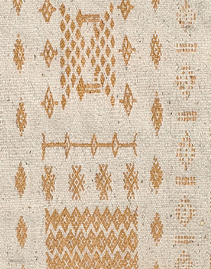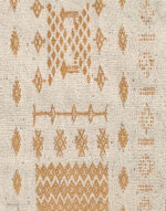 Interprétation de la traditionnelle gandoura mozabite par la reprise de certains des symboles qui y figurent tels que le coffre de la mariée et ses bijoux sur un fond blanc écru. Une composition épurée, parfaite pour une décoration contemporaine.